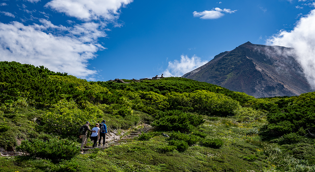 Your journey begins beneath Kamuy Mintara—the garden of the gods—Mosir’s highest and most sacred peak.